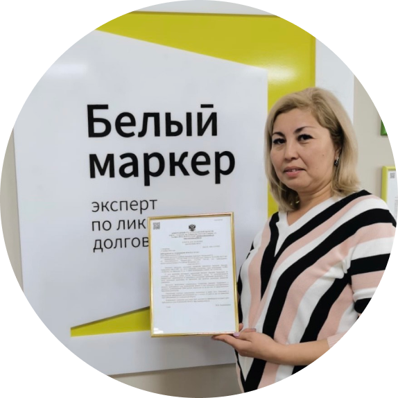 «Супруг взял на мое имя кредит 2 млн.руб. на развитие бизнеса. По его рекомендации я обратилась в Белый маркер. Работа компании устроила меня на всех этапах. После списания долга – чувствую облегчение».