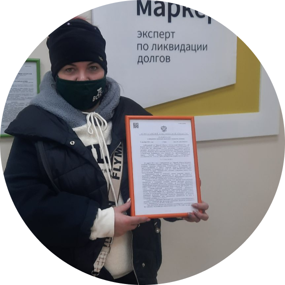 «Мой долг образовался из-за того, что моя дочь набрала кредитов в МФО (большую часть) и банках. Поскольку в МФО очень большой процент, она не справилась с выплатами и долги нарастали с космической скоростью. От коллекторов данных фин.организаций стали поступать звонки с угрозами не только ей, но и мне, и бабушке (моей маме). И как раз в этот момент мне в почтовый ящик положили флаер от компании Белый маркер. Обратилась за помощью именно к вам, т.к. не видела выхода из создавшейся ситуации. Ваши специалисты сразу предложили мне разумное решение, рассказали, как надо правильно действовать и общаться с коллекторами...
